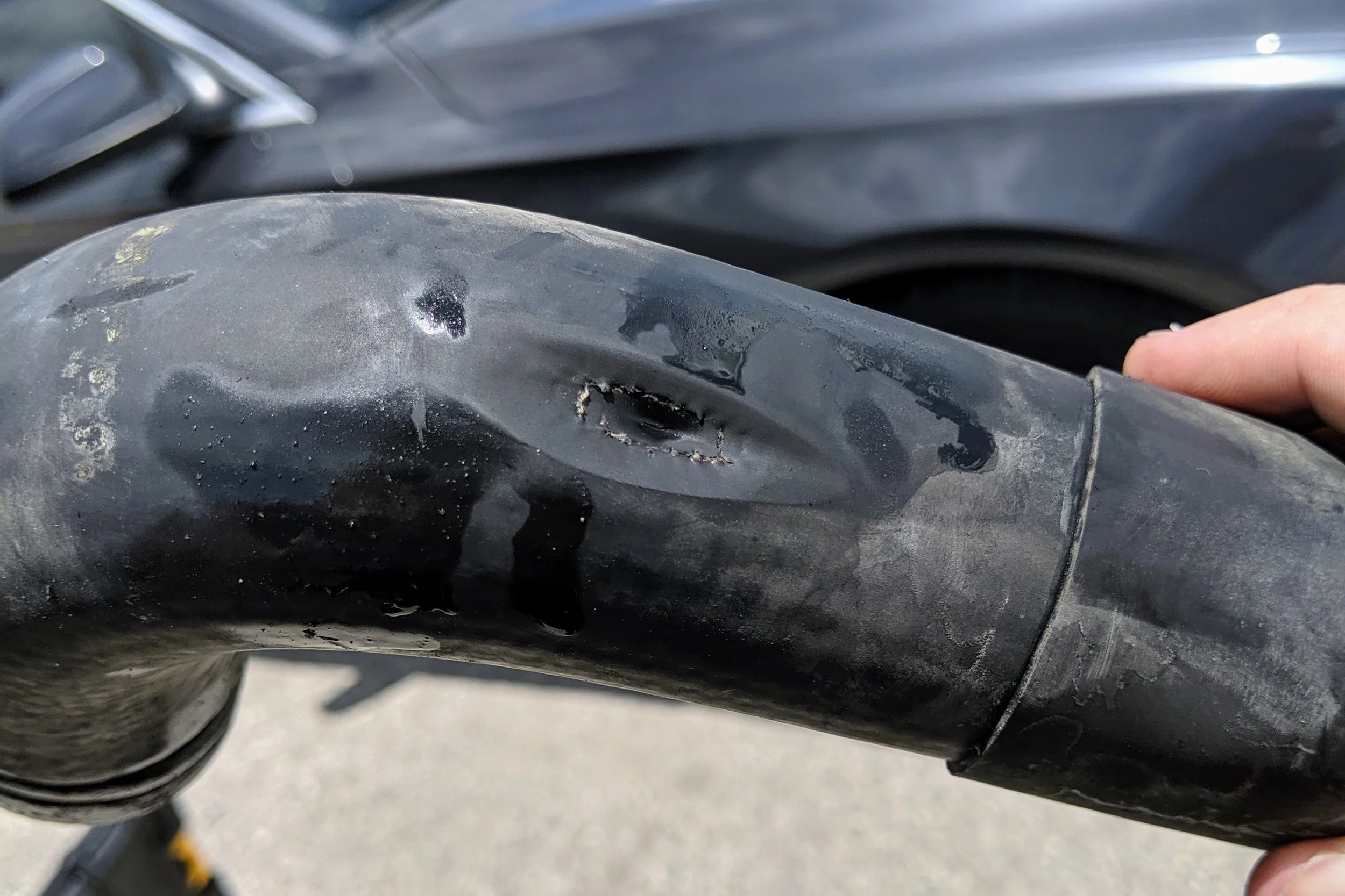 Not sure if it was bad installation by me, or the motor mounts were moving under braking, but either way we needed a new hose.